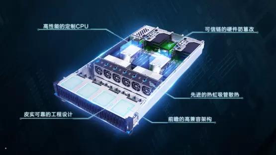 和传统服务器相比,星星海统一的整机方案可以支持不同的CPU主机,前瞻性的高兼容架构,统一规划的硬件底座,可以支持未来3-5年的服务器产品演进。
