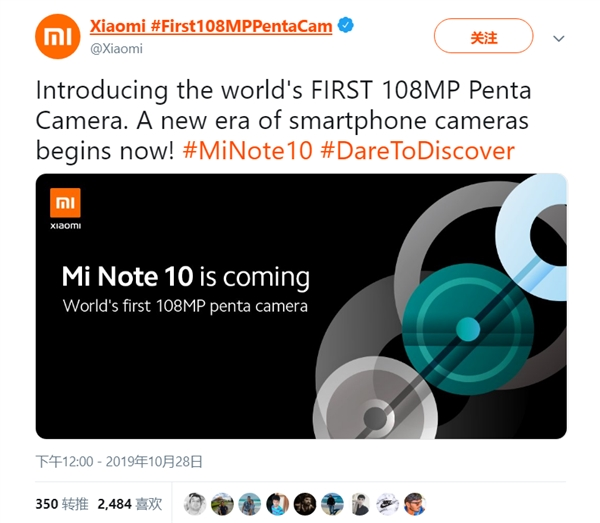 小米Note 10官宣:一亿像素五摄加持、或是CC9 Pro海外版