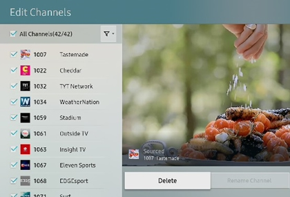 不过我看了一下三星电视+服务的免费电视频道,并没有太多付费电视套餐里面常见的主流电视频道。免费的三星电视+的频道质量暂时还不能和Comcast、AT&T这些有线电视巨头以及Youtube TV、Sling TV、Hulu TV这些每月几十美元套餐的流媒体电视服务相提并论。不过,用户可以自定义删除自己不感兴趣的电视频道,甚至可以卸载三星电视+这个应用。