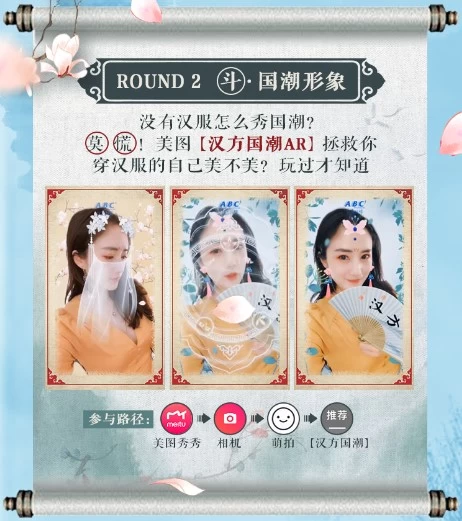 没有汉服怎么秀国潮?莫慌!美图【汉方国潮AR】拯救你!穿汉服的自己美不美?玩过才知道。