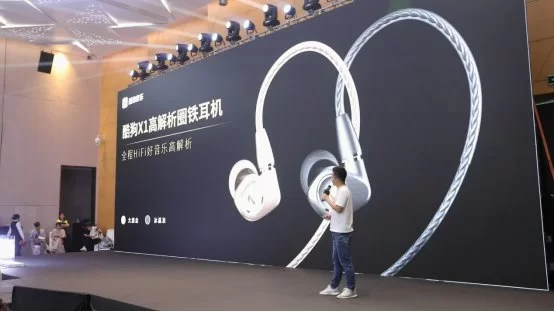 首先发布的是本次品鉴会的主打硬件产品——酷狗X1高解析圈铁耳机,在耳机腔体内采用了楼氏动铁双单元和10.5nm大动圈组合。能够更加准确把控与计算双单元的频率衔接,使得音色更加细腻动听,澎湃动量中也能精准掌控细节表现。