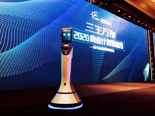 (图:五星级智能服务机器人“豹小秘”为峰会助力添彩)