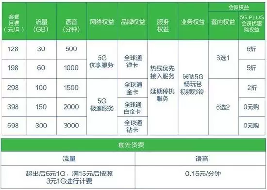 坏消息是:贵!最低套餐还得128元,且最低套餐只有30GB流量,超出套餐后5元1GB,且享受到的不是全速5G。一个特别骚的操作,5G网络收费开始模仿有线宽带,速率跟套餐价格挂钩,套餐贵档次高,对应的最高下载速率也高。