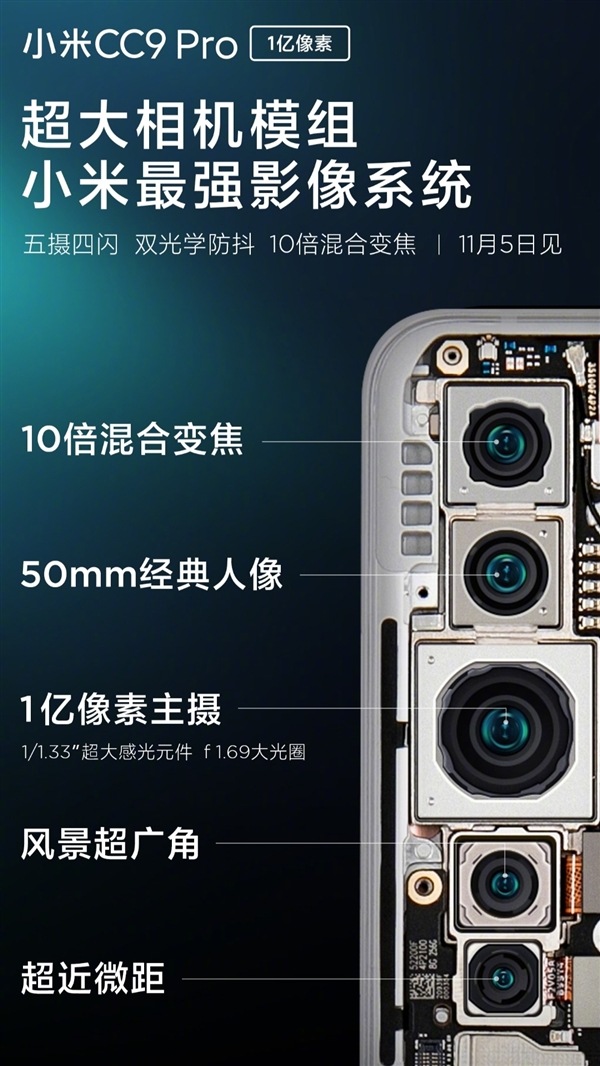 11月4日消息,小米CC9 Pro将于明天正式发布。