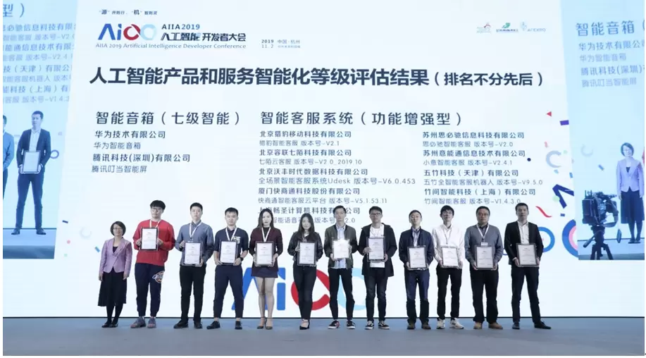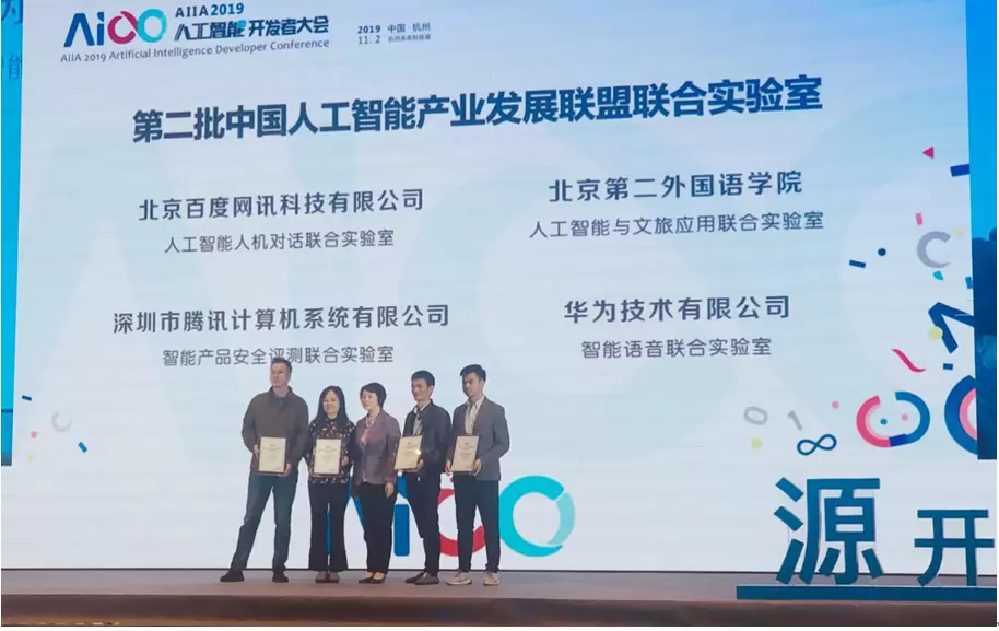 2019年11月1-2日,2019 AIIA人工智能开发者大会在浙江杭州召开,本次大会以“源”开则行、“机”智则灵为主题,聚焦“技术与应用”“AI与行业”“产业与经济”等领域的热点话题。在11月2日的主论坛上,腾讯公司的多项AI技术与产品获得业界高度认可,不仅与中国信息通信研究院联合成立了“智能产品安全评测联合实验室”,而且腾讯自研的人工智能产品腾讯叮当智能屏也获得了信通院的人工智能产品智能化等级评价7级认证。