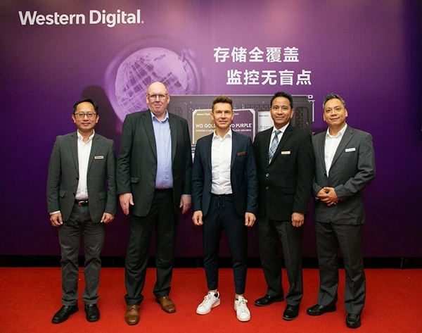 (由左至右:西部数据公司大中华区渠道业务董事总经理-杨俊文; 西部数据公司高级副总裁兼中国区总经理-Steven Craig; 西部数据公司中国及亚太区高级销售总监-Stefan Mandl; 西部数据公司产品市场总监-Brian Mallari; 西部数据公司高级市场总监–魏应辉)