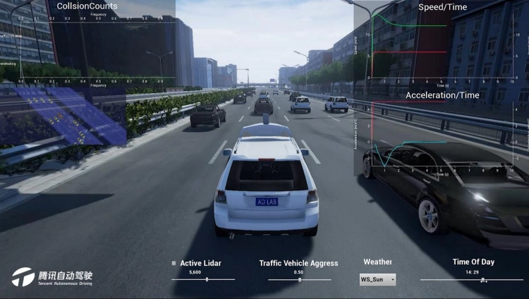 正如《侠盗飞车》或《头号玩家》的虚拟场景,游戏技术已经被运用在了自动驾驶研发领域。游戏技术业界领先的腾讯,通过虚拟现实技术、专业渲染引擎、三维重现等技术,建立了供自动驾驶测试的模拟仿真平台。与游戏场景一样,仿真平台可以模拟出不同城市、道路、天气、光照等物理世界交通特征,结合采集的高精度地图和交通流数据、车辆工程动力学模型等,制作成一个用于测试自动驾驶感知决策算法的大型在线飙车平台。