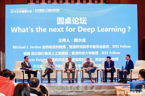 围绕“深度学习下一步”,颜水成博士与加州大学伯克利分校教授 Michael I. Jordan,香港科技大学教授杨强,南加州大学教授 Kevin Knight,北京大学信息科技技术学院教授王立威,以及清华大学计算机系长聘教授朱军展开讨论。