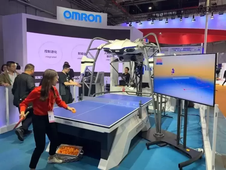 “这是我们的第五代FORPHEUS乒乓球机器人。”欧姆龙展台的工作人员告诉记者,该机器人搭载的是欧姆龙最先进的“Sensing&Control+Think”核心技术,即传感与控制+思考技术。
