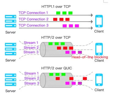 相较TCP+TLS+HTTP2的策略,QUIC优势在于:一是极短的建连时间,QUIC的建连时间中大部分为0 RTT,极少部分是1 RTT;二是采用了BBR拥塞控制算法,由于效果很好,后来还被移植到TCP内核中了;三是改善了HTTP/2中的队首阻塞问题,从而避免队首阻塞的多路复用;四是前向纠错(FEC,Forward Error Correction),在弱网环境下出现丢包时,可以通过未丢失的报文和FEC报文将丢包恢复出来,减少了不必要的重传,解决了在弱网环境下数据接收端的体验的问题;五是连接转移,QUIC通过数据包中一个64位的数值ConnectionID来标识一个连接,从而避免出现切换网络需要重连的问题。