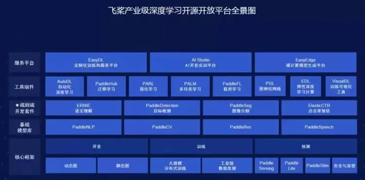 PaddlePaddle的全景图里面还有一层非常关键,就是全面的服务平台,这个服务平台给开发者提供了很多额外的价值。