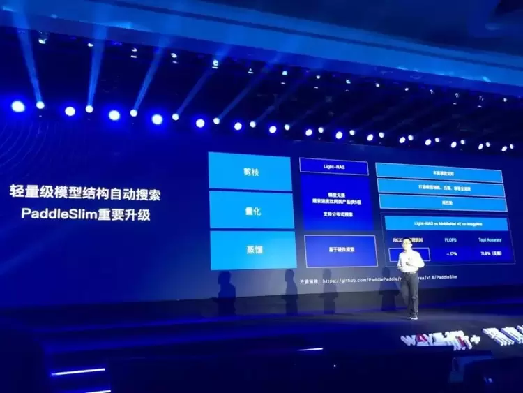PaddleSlim的上一个版本已经支持剪枝、量化、蒸馏等方法,这次的升级重点主要体现在自动化网络结构设计方面。通过这种自动化网络结构的方法,可以根据硬件的特点,把硬件作为其中的一个约束条件进行搜索。比如开发者在基于某个硬件做部署时,既想保证精度,又要保证速度,把模型压缩的足够小,就可以利用PaddlePaddle的自动化网络结构搜索技术。PaddlePaddle这次升级也提供了更丰富的模型支持,同时把训练、压缩和部署全流程进行了打通,并保证了足够的性能。