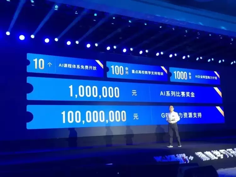 在这次峰会上,百度也发布了完整的开发者激励计划:一是10多门课程进行全方位的免费开放;二是百度将辅助100多所高校,进行深度学习教育的培训;三是辅助1000企业,助力AI业务转型;四是发布百万级竞赛奖金,推动各种各样AI竞赛的开展;五是亿级GPU算力资源的支持,支撑开发者更好地使用PaddlePaddle平台。