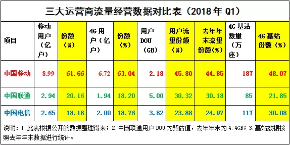 如果说中国移动初心不改,继续通过扶持咪咕而在流量经营中获得突破的话,我们只能说中国移动够执着,但是最终的经营结果可能会无情地宣告与其梦想相反的结局。好在,看到今年一季度经营成果后,中国移动开始改变依靠咪咕一条腿走路的经营思路。此次与腾讯联合推出WeSim卡就是明证。通过下表,我们现在再来分析一下今年一季度的流量经营成果。中国移动用户份额与流量份额的严重失衡,给其带来了非常大的经营压力,一方面是稳定基本盘的压力,一方面是新增获客的压力,最终都将体现到营收减损的压力上来。但是缺少“内容”,虽然中国移动也大开不限量竞争,推出了各种不限量套餐,而且资费也有相当的竞争力。但是今年一季度的经营结果无情地显示,提升用户DOU,绝对不是轻松+easy的事,而且低资费也不像以往那么有效。因此,与腾讯的合作,从中国移动来说,是保持其稳健且可持续经营的必然选择。而且,未来会不会继续与BATJ中的其他大佬合作,我是持积极的态度,预计中国移动也会持有开放的态度。只是,大佬的之间的合作需要催化剂,否则,一般来说,主动就意味着被动。