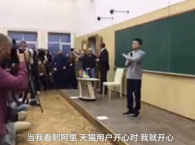 在乌克兰总统泽连斯基与马云举行会谈之前,马云首先到访了乌克兰哈尔科夫国立大学并做了相关的演讲。马云在演讲中表示使我快乐的不是金钱、好的名声、权利,成名可能是一场灾难。当你爱的人快乐时,你就快乐。