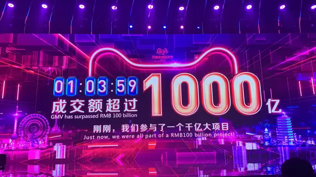 第十一届阿里巴巴天猫双11于今日凌晨正式打响。据双11实时交易数据显示,1小时3分59秒,交易额达到1000亿。去年实现这一成绩耗时1小时47分26秒!
