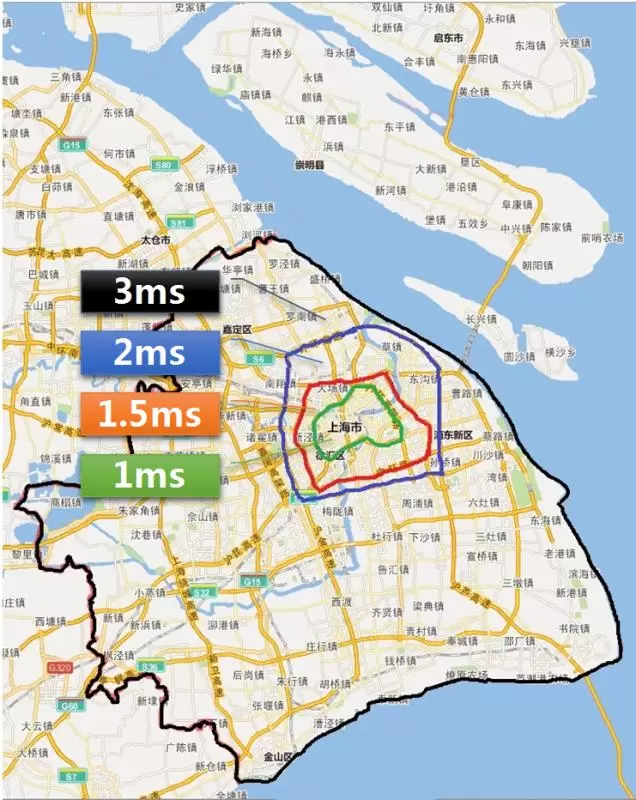 根据传输设备和板卡时延测试数据,结合光缆线路资源,采用大数据分析手段,上海电信创新性地提出了以内环1ms、中环1.5ms、外环2ms、上海境内(除崇明外)3ms时延圈的客户承诺指标体系,并于2016年底实现了产品化的工作。