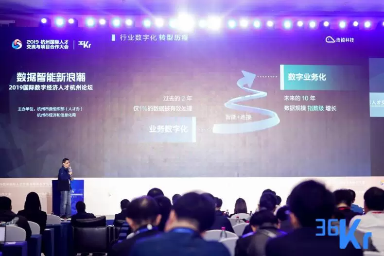 “当下的行业数字化转型,是从'业务数字化'向'数字业务化'螺旋上升的过程。”鲍钟峻表示,业务数字化是通过采集、存储等技术提取出业务流中的数据,其重要性在业界已达成共识,而数字业务化是通过人工智能等技术发掘数据的深度逻辑,从而实现业务价值,根据TMF的统计,过去的两年时间产生了有史以来90%的数据,但其中仅有不足1%的数据被有效处理。