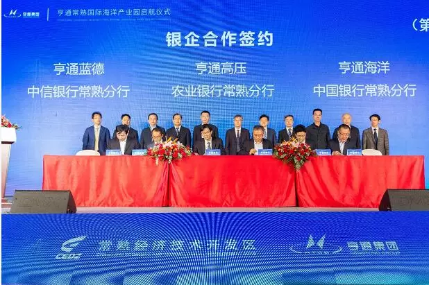 会上还举行了系列签约活动,亨通常熟国际海洋产业园与入驻企业,入驻企业与科研院所,入驻企业与园区配套装备、物流服务合作单位,入驻企业与银行分别签约。