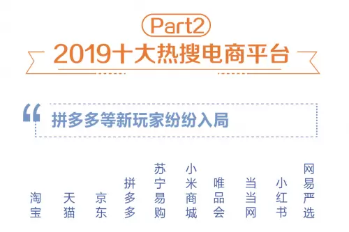 最新发布的《百度2019年双11大数据报告》显示,随着新玩家的纷纷入局,今年的双11已经被天猫、淘宝、京东、拼多多、苏宁易购、小米商城、唯品会、当当网、小红书和网易严选等“十分天下”。