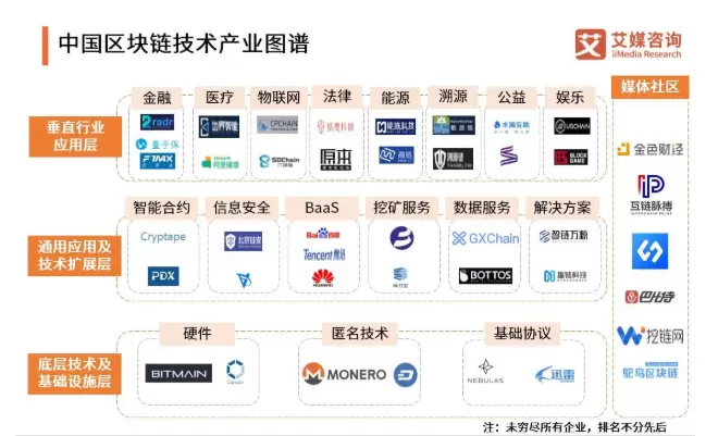 目前,我国区块链技术产业图谱由垂直行业应用层、通用应用及技术扩展层、底层技术及基础设施层以及媒体社区。
