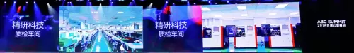 (8月29日,百度云智峰会现场,精研科技展现智能质检设备,左边是人工质检车间,右边是智能质检车间)