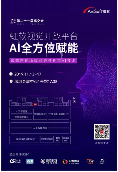 同期,虹软在今年高交会上还将受邀参与两项重要活动,分别是11月14日举办的“深圳人工智能创新应用先导区揭牌仪式暨人工智能与实体经济融合发展论坛”和11月15日由深圳市人工智能行业协会主办的第四届中国人工智能领袖峰会(AIC)。