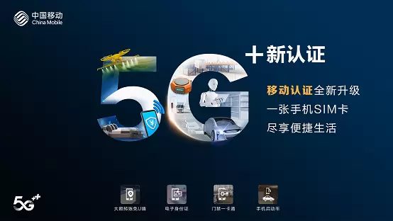 “5G+新认证”是指中国移动依托手机号卡的身份认证能力,以5G手机号码作为开放的统一账号体系,SIM卡提供多层次的安全认证,为开发者和用户提供身份认证、信任登录、应用互联和安全服务。手机号码就是各类APP的统一账号,一张手机SIM卡不仅能当银行U盾、车钥匙、工卡、门禁卡,还能作为数字身份证入住酒店等。更安全更便捷的生活,从一号一卡开始!