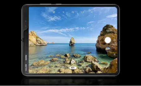将三星Galaxy Fold折叠后的封面屏幕上,还有一枚1000万像素的前置摄像头,能够快速检测脸部并聚焦,帮助用户拍摄出高质量的自拍照。尤其在户外游玩或上班通勤时,用户可以轻松单手持握三星Galaxy Fold及时抓拍精彩瞬间或自拍,非常方便。此外,如果用户在4.6英寸的Super AMOLED显示屏上预览照片觉得不够过瘾的话,只需打开三星Galaxy Fold即可将预览照片或其它运行中的APP流畅地切换到内部主屏幕上显示,获得轻松自如的操控体验。