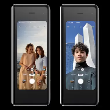 展开状态下,三星Galaxy Fold的主屏幕上共有两枚前置摄像头,由1000万像素的广角摄像头和800万像素的F1.9光圈的景深摄像头组成,支持全像素双核疾速对焦,能够清晰的捕捉每一个精彩瞬间。此外,两个摄像头还会通过协同工作打造最优质的拍摄效果,让人像自拍更有冲击力。值得一提的是,当用户在展开状态时打开相机拍照,三星Galaxy Fold 7.3英寸的超感官灵动折叠屏能够在主屏幕中呈现更直观、更清晰的取景预览,在大屏下的视觉效果不仅震撼,也更便于记录每个人最好的状态,同时其出色的拍摄体验更让人惊叹。
