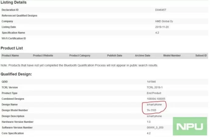 据外媒nokiapoweruser报道,日前,一款型号为TA-1208的诺基亚手机现身印度BIS认证,随后又通过了蓝牙认证。现在,诺基亚的另一款型号为“TA-1165”的新机也已通过蓝牙认证。
