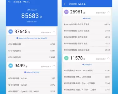 使用安兔兔进行测试,其取得了 85683 的总成绩,应对主流的生活应用问题不大。