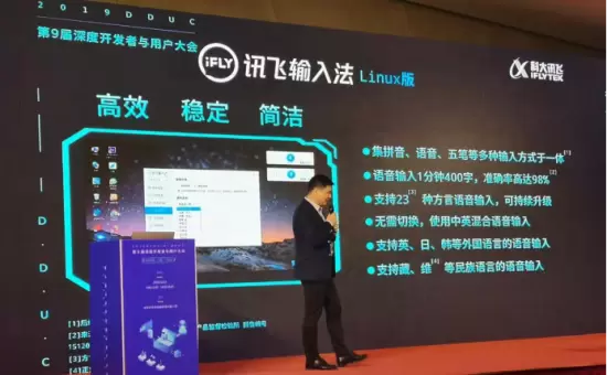 11月23日,第九届深度开发者与用户大会上,科大讯飞重磅发布讯飞输入法Linux版。这款桌面PC输入法与讯飞输入法手机端一脉相承,拥有强大的拼音和语音输入功能之外还集合了五笔输入,带来更优质的输入体验。