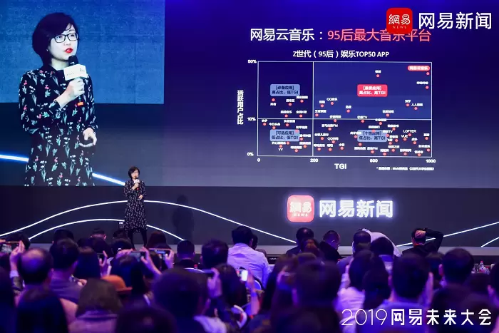 图:网易云音乐副总裁李茵在“2019网易未来大会”未来新阶层专场论坛作主题演讲。