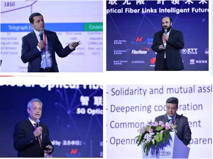 印尼工业部电子和信息通讯分部负责人、埃及电信公司国际销售总监、阿联酋电信运营商ETISALAT高级副总裁、厄瓜多尔运营商 TELCONET 创始人及董事长、巴西运营商 PRIME TELECOMMUNICATION CTO、住友电气工业株式会社企划部总经理、J-FIBER研发经理、昭和电线电缆系统株式会社SWCC昭和电缆系统新业务经理等分别就光纤到户在印尼市场的发展现状及未来、探讨海光缆市场的发展和应用、EtisalatFTTH发展、由一个第三世界国家成功部署 FTTH 中得到的经验、巴西国家 FTTH 发展规划解析、未来互联世界 研发的持续演变与挑战、多模特种光纤技术及应用、日本5G光缆新技术等主题发表了精彩演讲。