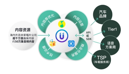该方案结合了车内场景的特点和汽车厂商的诉求,在背靠优质资源和海量用户的基础上,通过整合“内容+服务+硬件”,为国内外整车厂商、tier 1厂商、语音方案商、车载服务商等,提供一站式、高质量、标准化的服务方案,让用户在各种场景中自由切换,甚至让音乐不止于“听”。