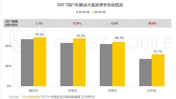 此前,QuestMobile在《2019中国移动互联网秋季大报告》中的数据显示,百度系用户规模已经突破10亿,移动端渗透率高达88.4%。如今在9至10月用户使用时长增速排位中,百度系移动产品站上首位,领跑行业。可见,百度通过智能小程序布局构建的“搜索即服务”已经完成并发挥巨大作用,并带领百度系移动矩阵在互联网用户流量和使用时长增速见顶回落的背景下,依旧保持强劲的增长实力。