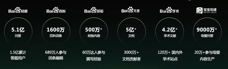 作为内容生态的重要组成部分,知识类信息是用户每天都在高频检索的。百度公布的数据显示,经过十多年知识内容布局与沉淀,通过与用户、专业人士和专业机构共建,百度知道、百度百科、百度文库、百度经验、百度学术、宝宝知道六大知识类产品目前已经积累了包括文章、视频、评论回答等形式的十亿以上的高质量内容。