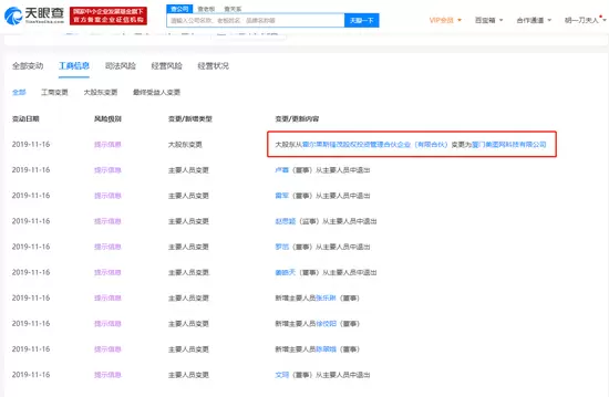 天眼查数据显示,11月14日,大街网运营主体北京大杰致远信息技术有限公司发生工商变更,美图的运营主体厦门美图网科技有限公司成为公司法人股东。包括软银中国资本的投资实体之一杭州软银隆悦创业投资合伙企业(有限合伙)等多位投资人退出,俞敏洪仍为公司自然人股东。