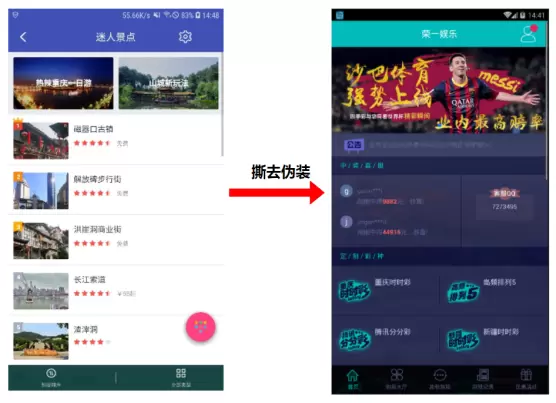 其实,PokerFaceGambling病毒家族早在2017年便被发现,随着相关部门和应用市场审核、打击加严,病毒也在迭代更新,从最早的直接以博彩软件命名,到最新的伪装成旅游、购物、装修等“正常”软件。用户在下载安装后并不会察觉出异常,当满足一定条件时,才会显示出赌博软件的真面目,体现出强大的隐蔽性特点,大大增强了病毒软件的感染率。