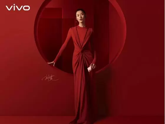 在照片中,刘雯手持偏橙配色的vivo X30,身着一袭红色礼服置身于红色背景中,呈现出一种别样的东方美。眼神直视镜头的她完美呈现出超模的表现力,高级质感一跃而出。