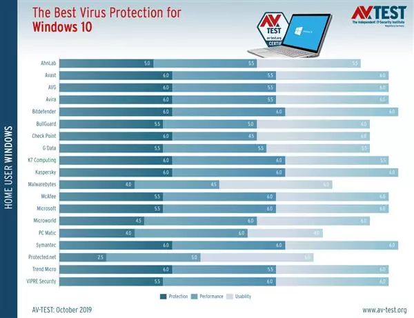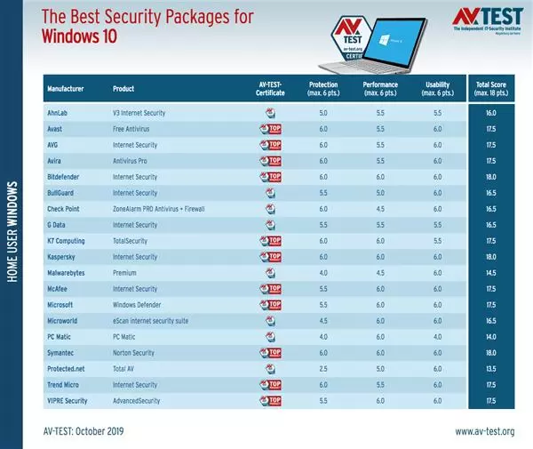 AV-TEST 刚刚公布了 2019 年 9 月份的 Windows 10 杀毒软件对比,共有 19 款产品参与,不过没有国内的。