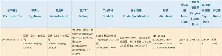 近日据 3C 认证官方网站查询信息显示,一款型号为 "L79041" 的联想 5G手机通过 3C 认证,这款设备具有 27W 快速充电功能。