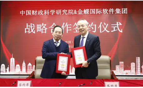 11月29日,金蝶集团与中国财政科学研究院(简称财科院)在北京签订战略合作协议,共建中国财政科学研究院“金蝶智能财务云研究所”,推动智能财务的全面发展。中国财政科学研究院院长刘尚希,金蝶集团董事会主席兼CEO徐少春出席了签约仪式。