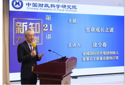 金蝶集团董事会主席兼CEO徐少春在“新知课堂”上做主题演讲