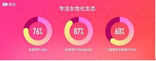 数据显示,美拍用户中76%为女性,且在所有女性用户中,87%为90后,60%居住在一二线城市。具有年轻、城市化特征的用户群体使得美拍成为了国内年轻女性最集中的短视频平台。而基于鲜明的用户画像,美拍不仅已经衍生出了诸多女性用户喜爱的细分内容品类、聚集了众多来自全球的女性短视频达人,也奠定了其以女性为中心的定位。