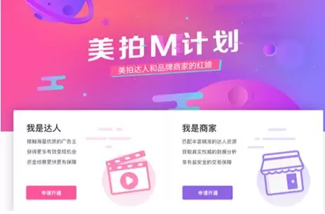 美拍M计划是基于让达人更好的实现变现目的推出,是达人和品牌商之间的“红娘”。当品牌方有推广需求时,找到M计划,发布需求帖,M计划会给品牌方推荐更好的达人资源。与此同时,当达人有变现需求时,加入M计划,M计划会给达人推荐优质广告主。
