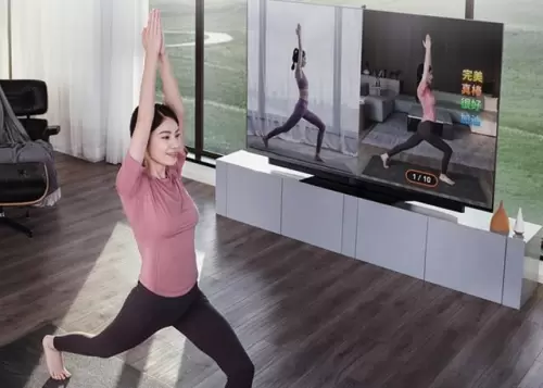 例如,很多人在家做健身时,通常只能通过手机或平板来查看健身教程,而现在你只需打开华为智慧屏就能获得相关的运动教程,而且在你运动过程中,华为智慧屏结合弹出式摄影头和强大的AI技术,还可以实时识别你的身体姿势,给你提供标准的动作指导,从而大大提高你健身的效率和作用。
