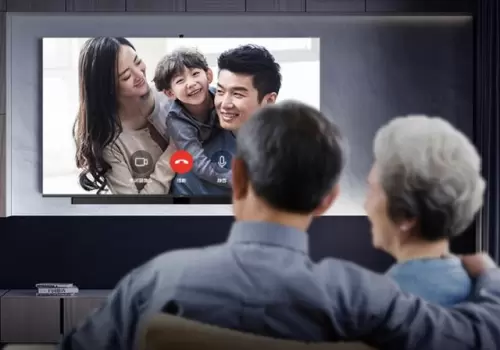 此外,手机接听视频聊天电话时,也可以转接到华为智慧屏上,并且华为智慧屏内置的弹出式摄像头"AI慧眼"支持智能角度校准、智能补光等功能,能够时刻保证良好的视频聊天体验。