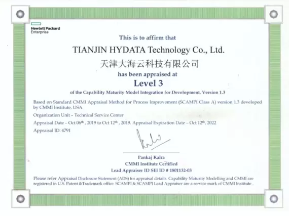 - 海云数据通过CMMI3级认证,研发及质量管理能力跻身国际先进水平